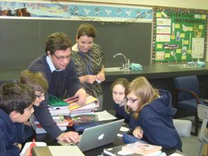 The middle school wing is unique in that it provides our students access to a true working science lab that includes three work stations with sinks and lab benches for all students, lockers and a beautiful open lounge area in the center of the wing is decorated with the stain glass windows from the original church. Our computer lab contains twenty-eight flat screened computers which are continuously updated with the latest technology. Printers and scanners are available. The lab is used by all grades, Pre-Kindergarten through grade eighth. The wireless cart can be found in many classrooms throughout the day. Each middle school classroom has an Interactive WhiteBoard unit which provides interactive lessons and is available for student presentations and projects.