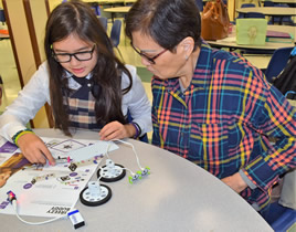 On October 24, the 5th Grade Students and their Parents came together to collaborate on different stations involving Math, Language Arts, Social Studies, and Science; but it quickly turned into a Maker Day, when the students and their families used our littleBits and Snap Circuit Jr. kits at the Science station to create, invent, and make. They also visited the Language Arts station where they chose the correct parts of speech to complete a story. At the Social Studies station, they used their Chromebooks to log into their Discovery Education account and create an interactive board about a Native American group they have learned about. Lastly,at the Math station, using their Chromebooks again, they completed a Carmen Sandiego assignment on their Go Math account. Not only did the students get to share their love of learning with their parents; they also got to share a sweet treat snack with them as well.