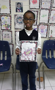 Congratulations to our Germ Awareness Contest Winners sponsored by our School Nurse, Mrs. Hermosilla. Students learned about the various kinds of germs they might encounter at school and at home and the best ways to keep those germs from making them sick. Then they were asked to create a germ of their own, describing what illness it might cause and drawing what it would look like. As you can see they are all very proud of their Germs! Now don't forget to wash your hands and keep the real germs away!!
