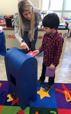 FIRST GRADERS HAVE A SPECIAL DELIVERY FOR THE SCHOOL'S MAIL CARRIER