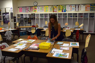 This first day of school Ms. Fama’s fourth grade class participated in a Card Tower STEM project. Students were assigned to groups of 3. Then each group received a deck of 52 cards. The rules were simple: everyone must participate, treat everyone and their ideas with respect, and stay in one spot. They would have 15 minutes to build a tower together and there would be awards for the tallest, widest, and most creative towers. Then they set off to work. Students worked cooperatively and were supportive of their classmates’ achievements.